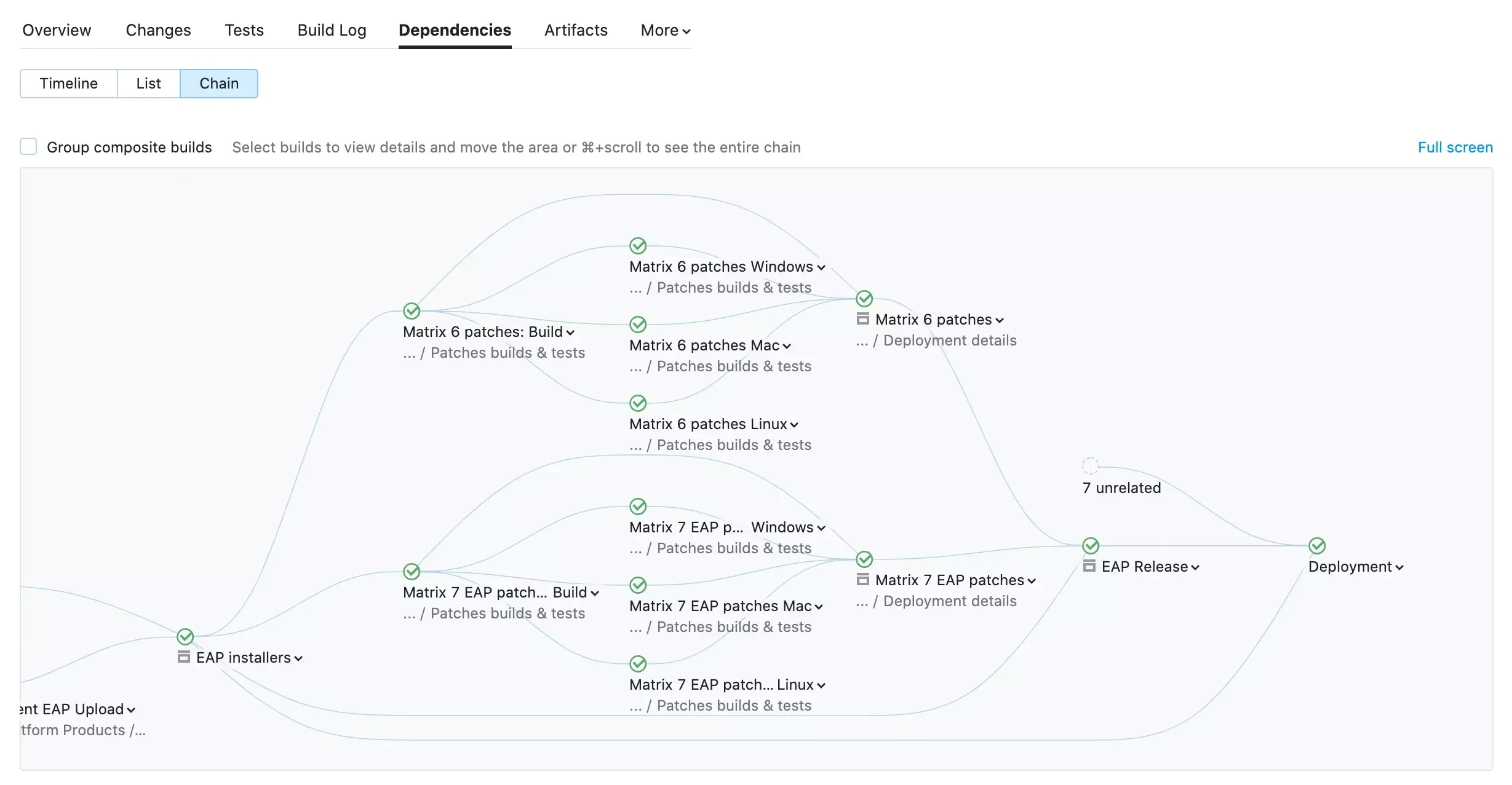 Avec TeamCity, le concept de pipelines CI/CD est porté à un nouveau niveau. Vous pouvez créer des applications dont le code source est réparti sur de nombreux référentiels, exécuter plusieurs builds et tests en parallèle et utiliser des optimisations intelligentes qui vous font gagner du temps lors de l'exécution de builds incrémentaux. Les chaînes de construction vous aident à structurer votre processus de livraison de logiciels. Vous pouvez ainsi vous concentrer sur l'écriture de code et les tests au lieu de devoir relier différentes parties de pipelines.
