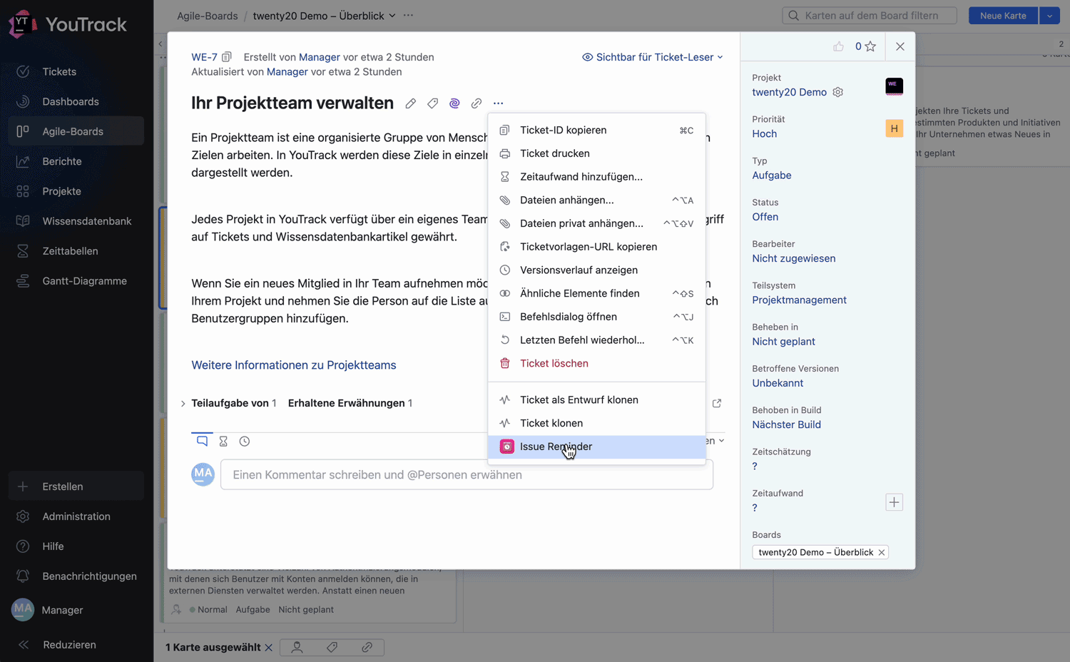 N'oubliez plus jamais les événements importants. Cette application est un outil pratique pour créer et gérer des rappels individuels pour les issues directement dans YouTrack.